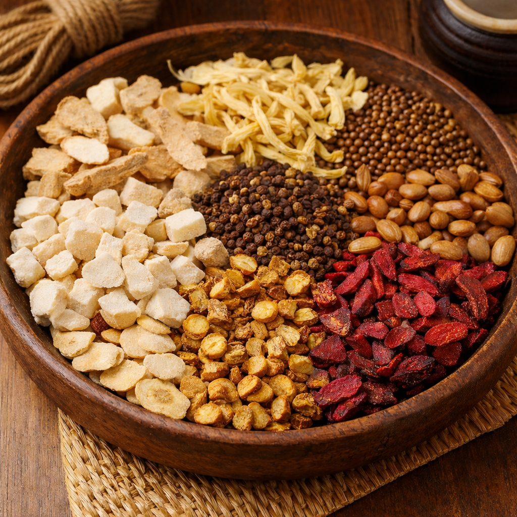 Zhi Gancao (Honey-fried Licorice) 6 g – Harmonizes the formula