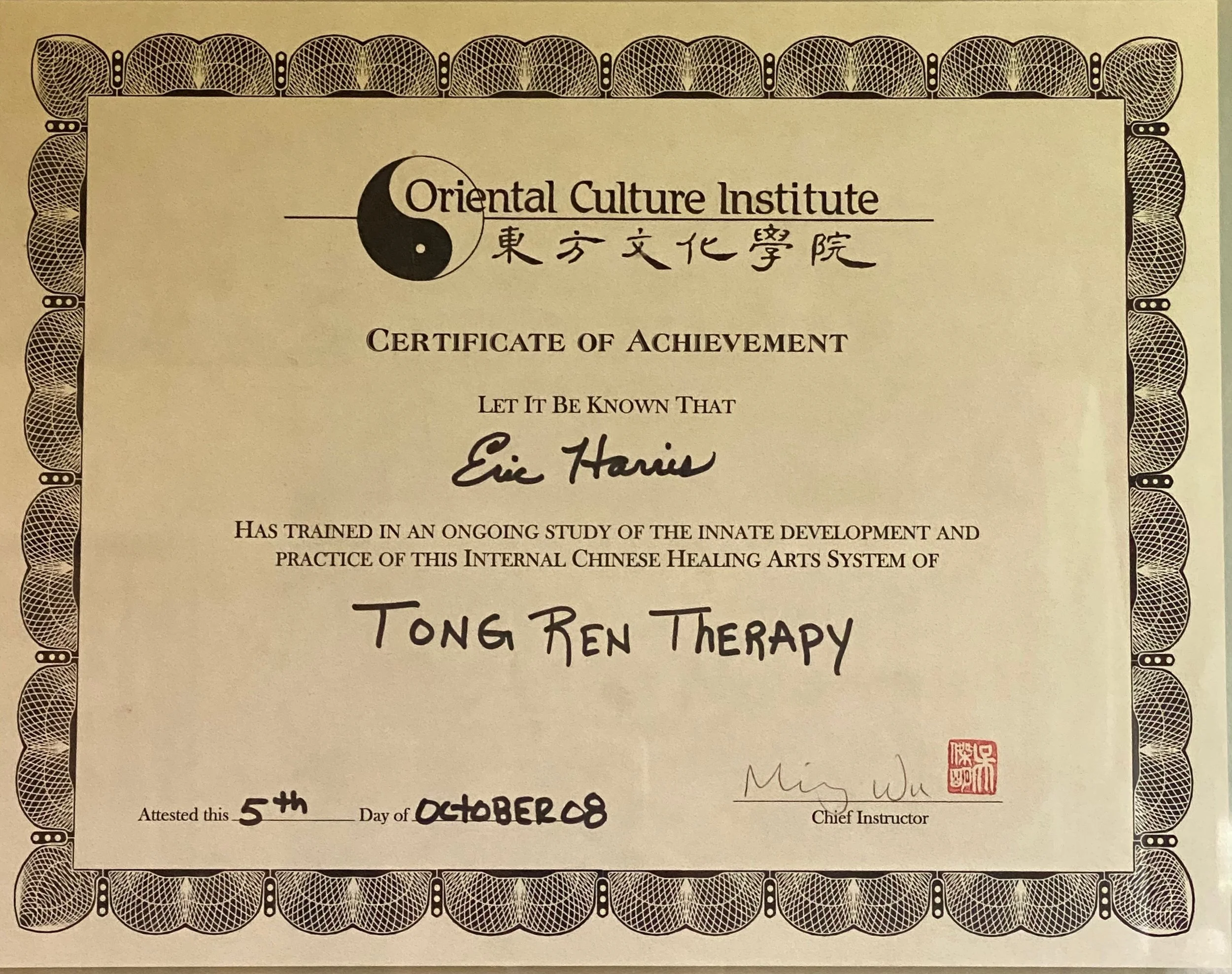 Erik holds professional certifications as a Qi Gong Instructor, Chinese Herbalist, Tui Na Therapist, Medicinal Aromatherapist, Auriculo-therapist, Reiki therapist, and Tong Ren Therapist. He offers these modalities as well as cupping therapy, guasha, moxibustion, crystal therapy, meditation, EFT, and sound healing for in person sessions. Erik offers Chinese herbal consultations, Tong Ren therapy-distance healing, Holistic Healing sessions for immune support, emotional support sessions with EFT, and private qi gong and meditation instruction for virtual clients. Erik holds a B.S. in Psychology from Springfield College in Springfield, MA. He applies what he learned about the mind and body connection to his practice.