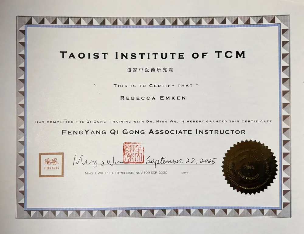 My name is Rebecca Emken, and I’m a certified Fengyang Tui Na Practitioner. I first met Dr. Wu when I was ten years old. Years later, in 2023, I began studying tui na and tai chi with Dr. Wu.